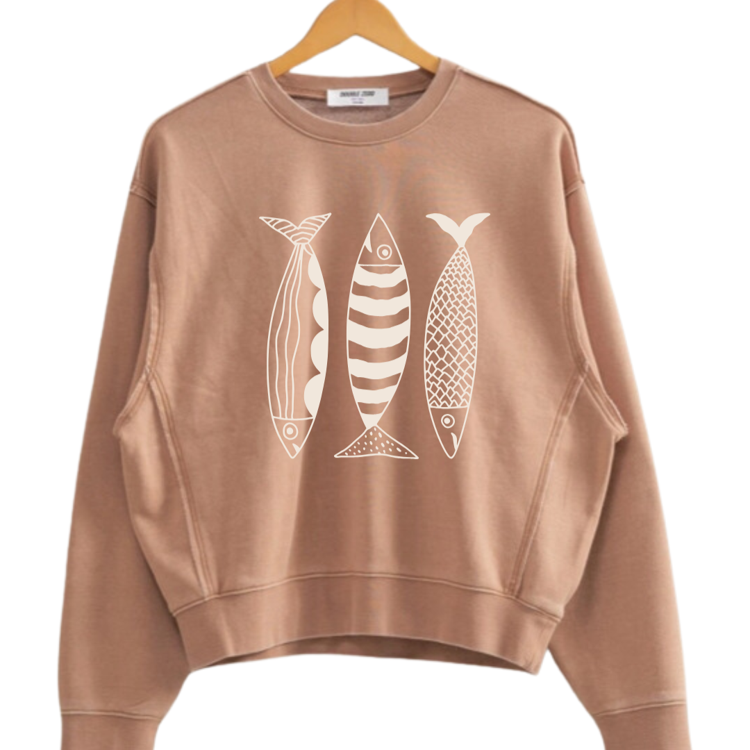 Stay warm and stylish this season with our Taupe Sardine Sweatshirt. Made from soft taupe fabric, it's perfect for staying cozy on chilly days. Featuring the on-trend Fisherman Core style, you'll look effortlessly cool while staying comfortable. Upgrade your wardrobe with this must-have sweatshirt.