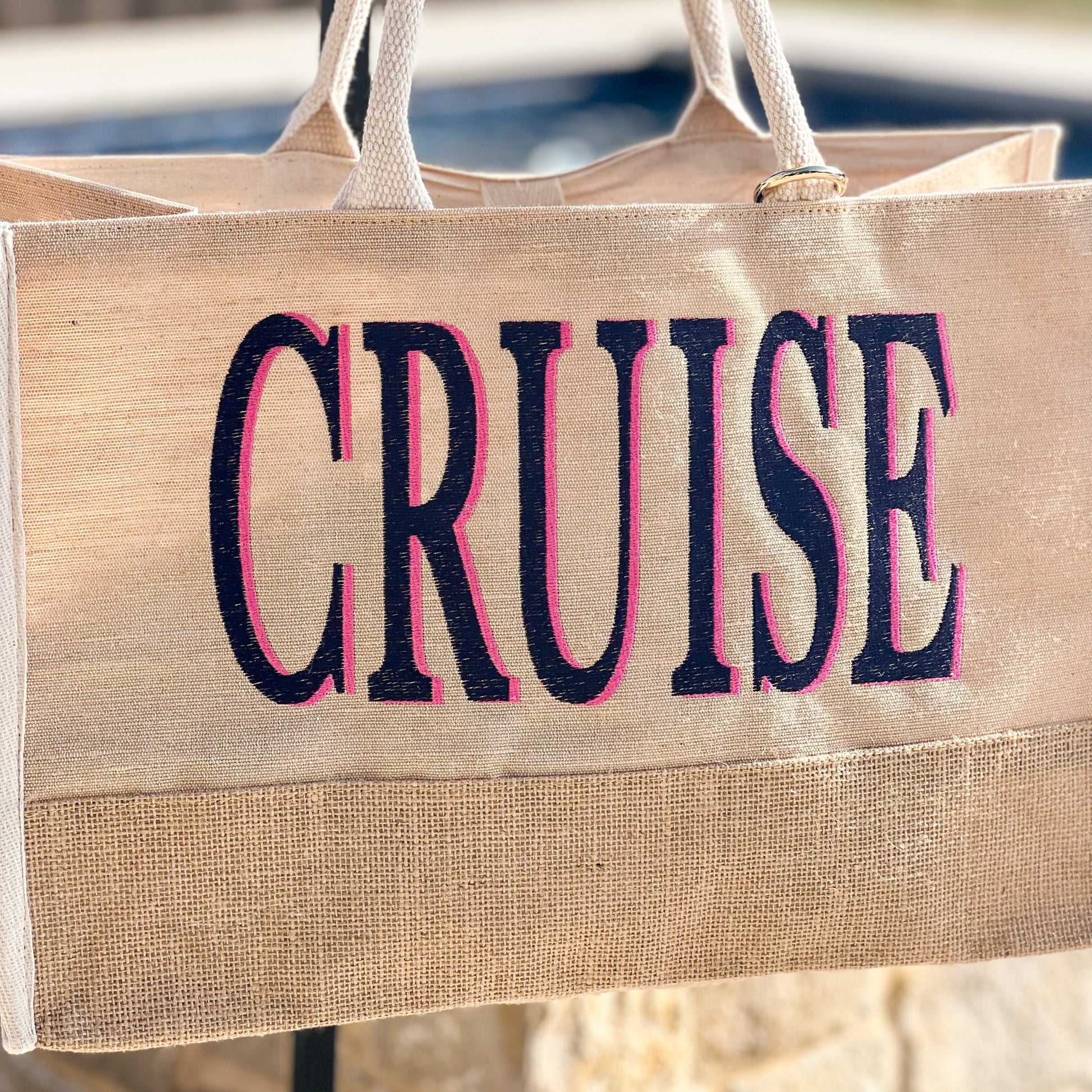 This stylish and lightweight burlap tote bag is perfect for your cruise vacation. Easily stored away and packable in your luggage, it can be conveniently taken on all your excursions and adventures - ensuring your belongings are always safe and secure while you explore.